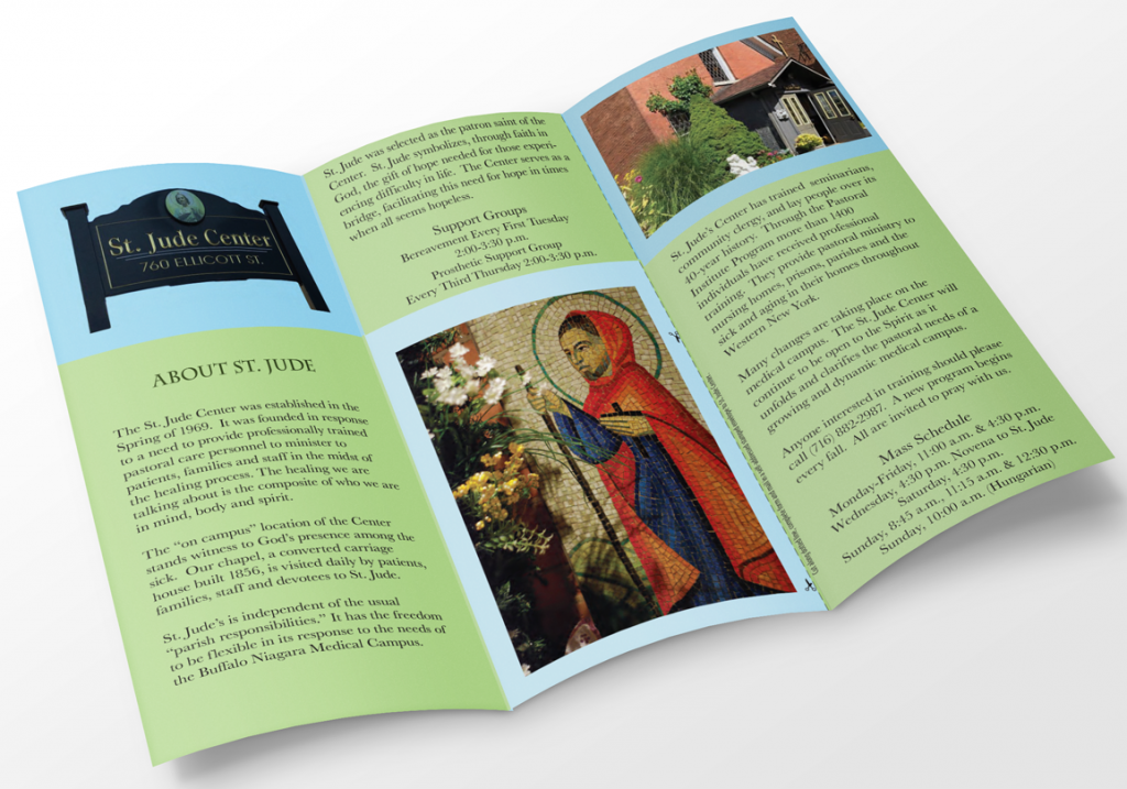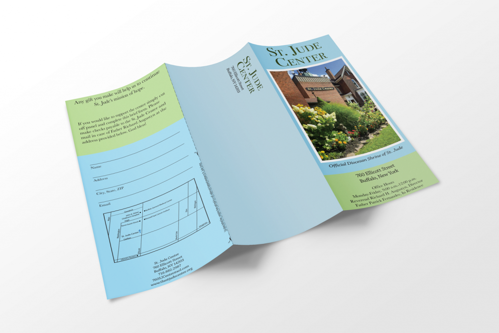 This is a brochure I did for a client who wanted a new pamphlet for their church. The old brochure was pink and cream color scheme and I was asked to update it to a more modern look.